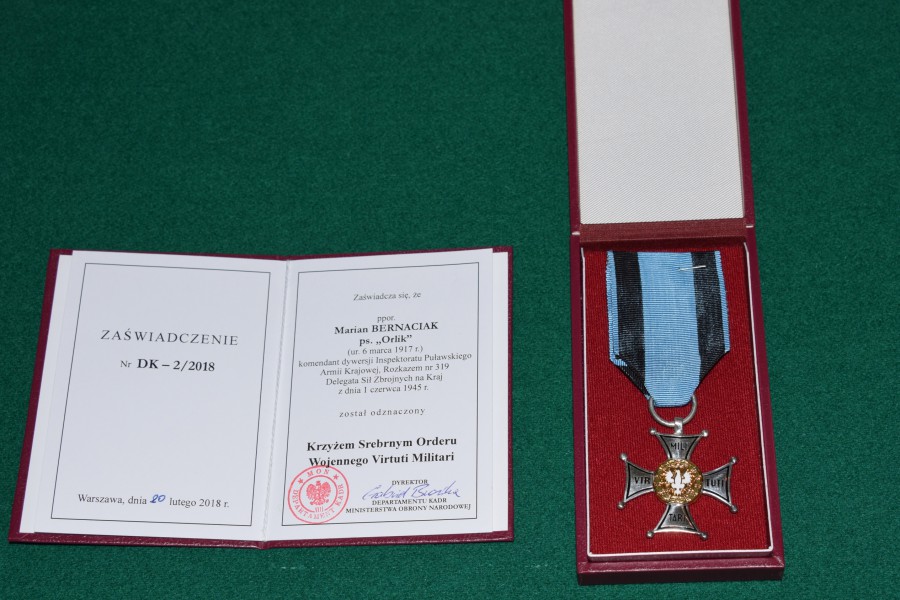 Krzyż Srebrny Orderu Wojennego Virtuti Militari po 73 latach trafił do Rodziny mjr. Mariana Bernaciaka „Orlika”